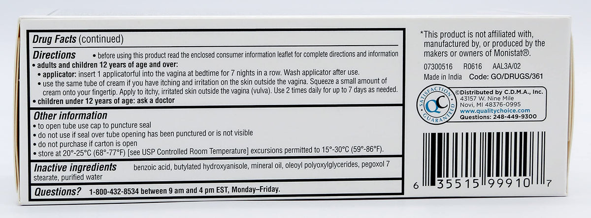 Quality Choice Miconazole Nitrate 2% 7 Day Vaginal Antifungal Cream, 1.59 Ounces (45g)