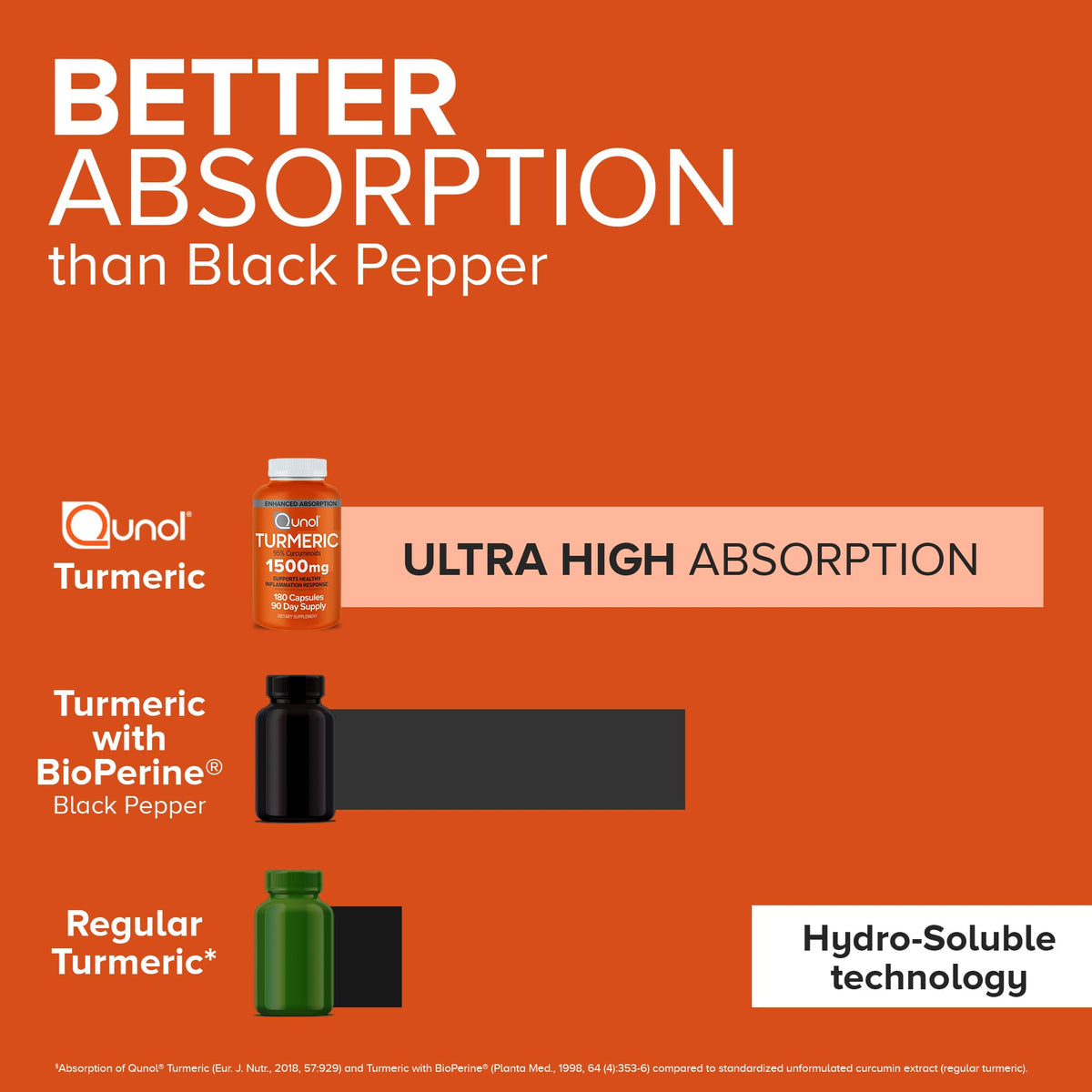 Qunol Turmeric Curcumin Supplement, Turmeric 1000mg with Ultra High Absorption