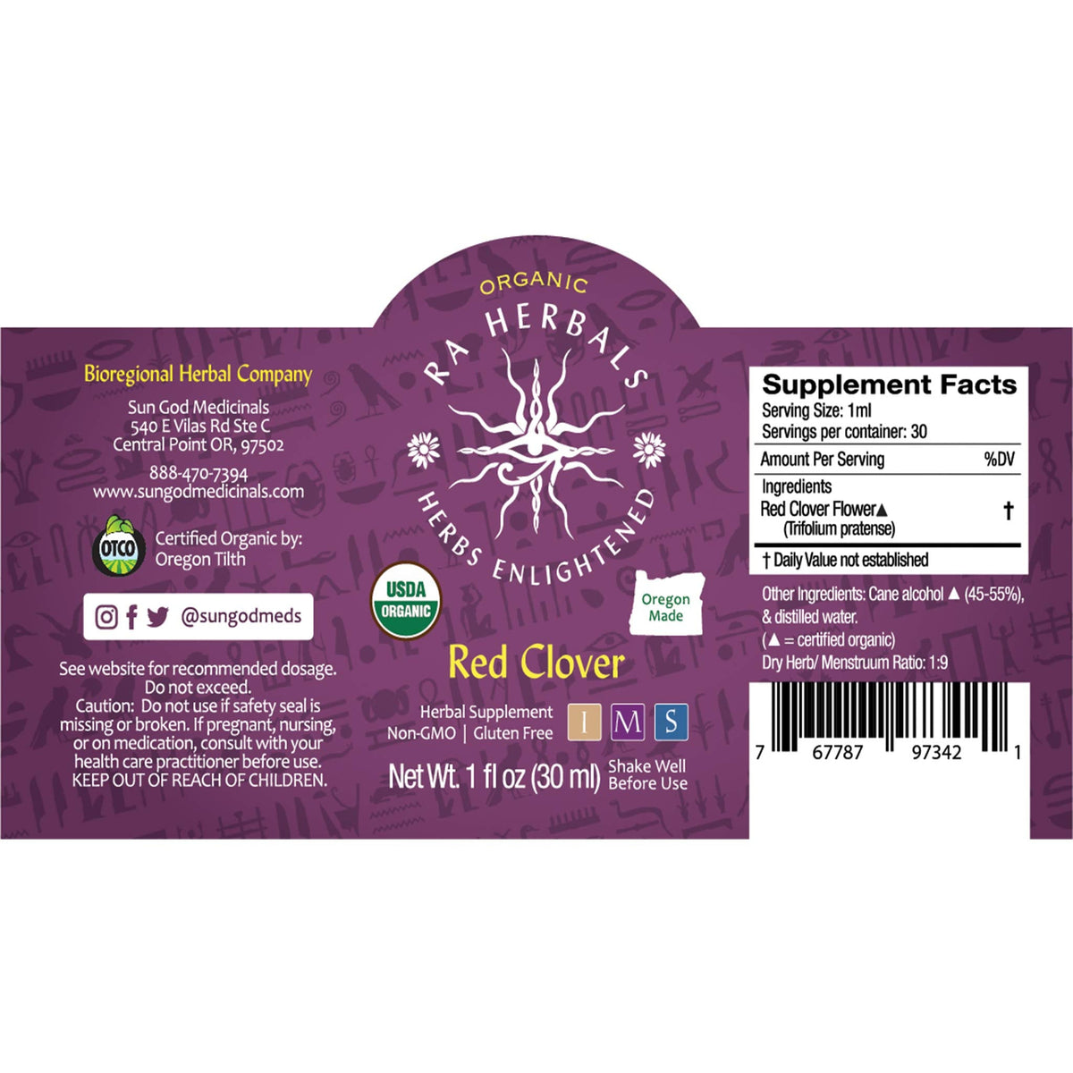 Ra Herbals Organic Red Clover Liquid Extract - Menopause Support - 1 fl oz