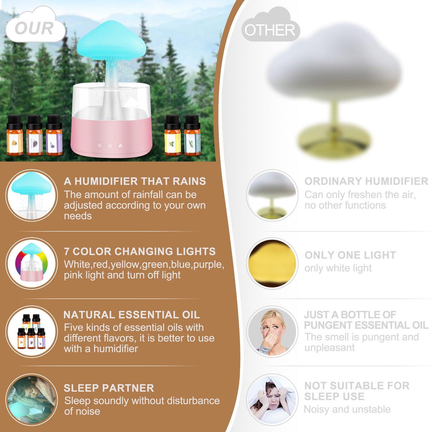 Rain Cloud Humidifier Water Drip, Mushroom Rain Cloud Diffuser, Raining Cloud Night Light