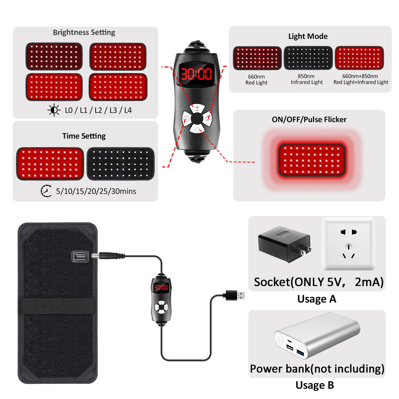 Red Light Therapy Belt, Infrared Light Therapy for Body, Wearable Wrap with Timer