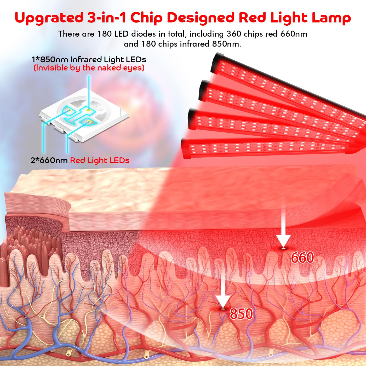 Red Light Therapy for Body, 180LEDs Red Light Therapy Lamp with Tripod, 3-in-1 Chip Designed 660nm &850nm
