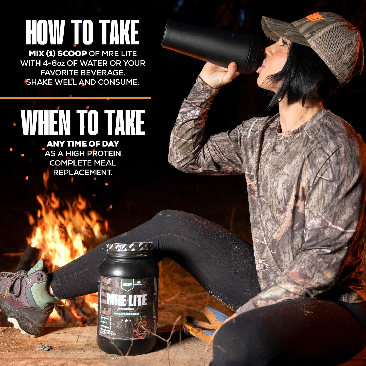 Details: MRE Lite will deliver a high protein, great taste and excellent keto meal replacement shake of whole foods. However, it will have much lower carbohydrates for the person keeping a close and watchful eye on his or her macronutrients from meal supplement shakes. This high protein meal replacement contains keto protein and MCT oil. Commonly extracted from coconut oil, MCT oil is a source of fats that the body can efficiently use as a source of energy for this low carb protein powder. REDCON1's MRE Lite whole food high protein shakes contain an animal protein powder blend of beef, salmon, chicken, egg, brown rice and pea protein powders. Each meal replacement shake is just 130 calories with 24g of protein and just 2g of sugar in this motivational protein shake. We made sure every flavor is delicious, fulfilling and refreshing so as you hustle hard each day, you never have to sacrifice taste for brain focus or high performance in a protein shake again. A protein powder meal replacement packed with low carb and keto friendly ingredients such as MCT oils, 24g protein, and free of whey for easier digestion and anti bloat.