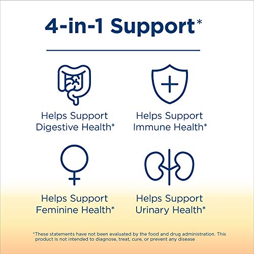 Details: Ultimate Flora Women’s Care Probiotic is the #1 selling women’s probiotic.** The improved formula supports urinary and digestive health, and helps maintain healthy vaginal pH and yeast levels.* It provides immune support with the #1 Dr. Preferred Probiotic Strain for Respiratory Health.*** * 25 billion cultures per capsule, 12 probiotic strains, including the #1 most studied strain.**** It has more clinical trials on women than the leading brand.***** Non-GMO Project Verified; gluten, dairy and soy free. Potency, quality, purity guaranteed, DISCLAIMERS: *These statements have not been evaluated by the Food and Drug Administration. This product is not intended to diagnose, treat, cure, or prevent any disease, **Based on IRI unit sales, ***Based on 2018 IQVIA ProVoice Survey of Primary Care Physicians who preferred HOWARU probiotic strain B. lactis Bl-04 for Respiratory Health after review of select clinical studies. ****L. rhamnosus GG strain, PubMed Clinical Trials *****On strains,