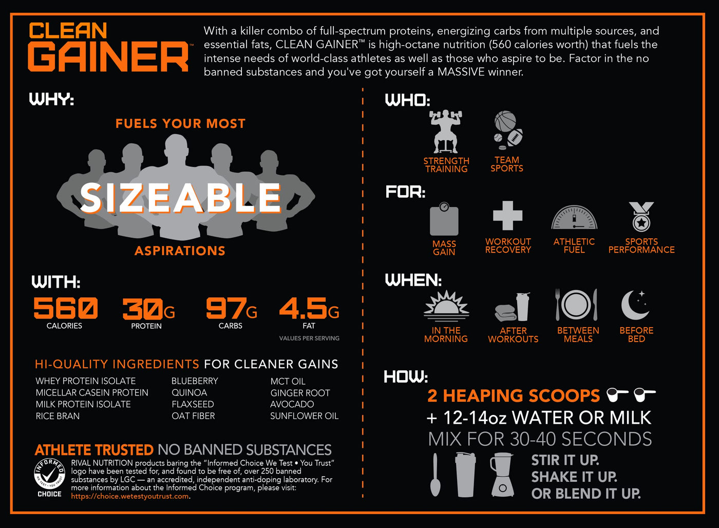 Rivalus Clean Gainer - Chocolate Fudge 10 Pound - Delicious Lean Mass Gainer