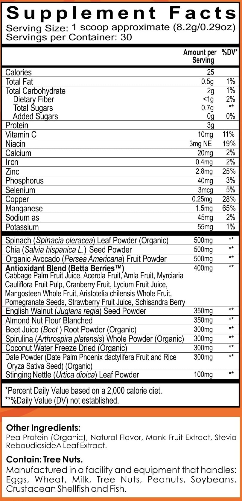 - ORGANIC SMOOTHIE POWDER - Our pregnancy superfood powder is made from all-natural and organic ingredients. Some of the ingredients are spinach, chia seeds, avocado, mixed berries, walnuts, spirulina, beets, coconut water, and stinging nettle.