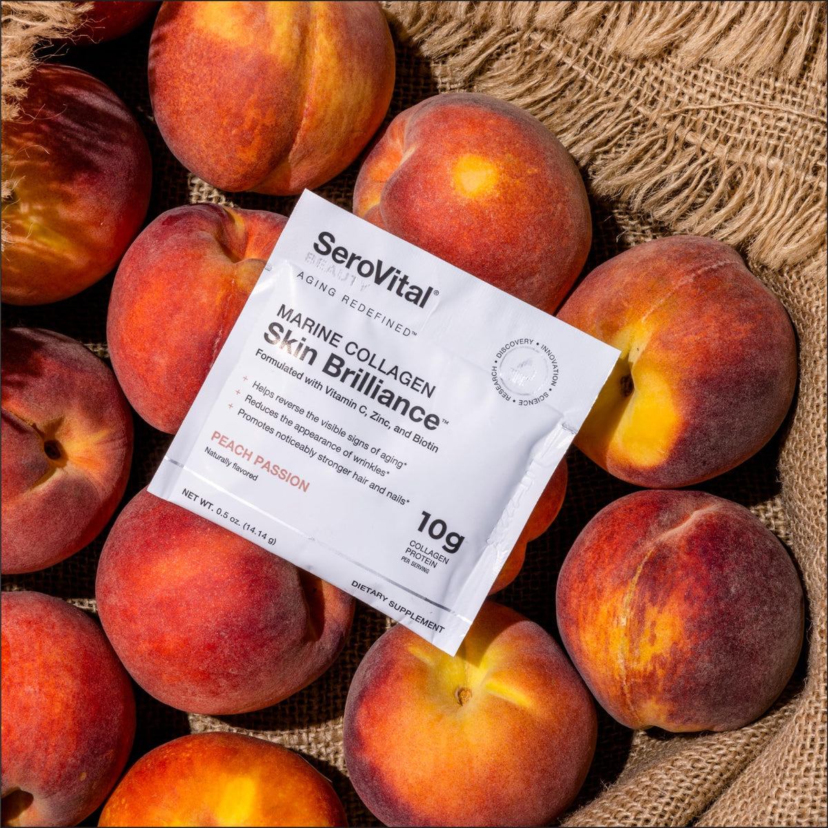- UNIQUE MARINE COLLAGEN FORMULA – Rather than bovine or porcine collagen, Skin Brilliance gives you two forms of bioavailable, wild-caught marine collagen. You get a full 10 grams of protein, including collagen peptides, in a delicious peach-passion powder.