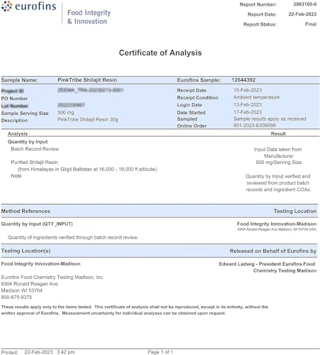 - Outstanding Purity & Top Quality: In its pure form, shilajit is minimally processed and presented as a thick, tar-like goo. It contains no heavy metals, fillers, or additives and is vegan-friendly. P!nkTribe shilajit resin has been safety tested by a professional organization, ensuring a 100% quality guarantee. You can buy with confidence.