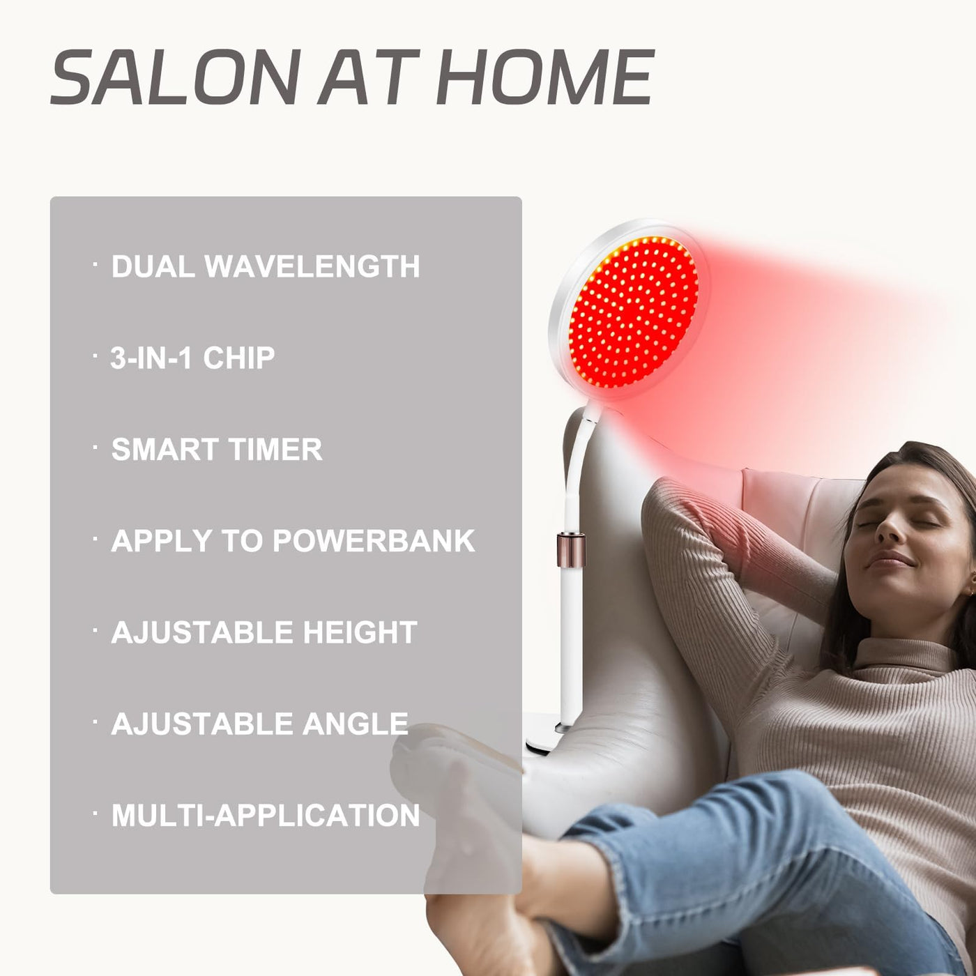 Shomterade Red Light for Face with Base, 100LEDs 3-in-1 Chips Infrared Light Lamp, 660nm &850nm