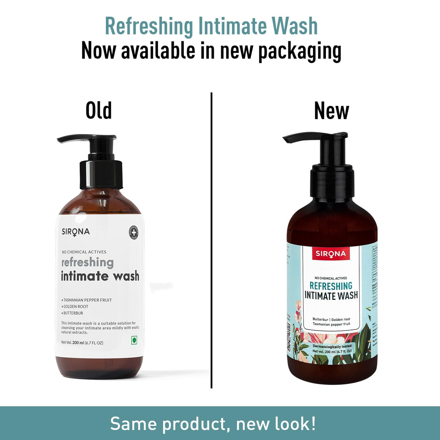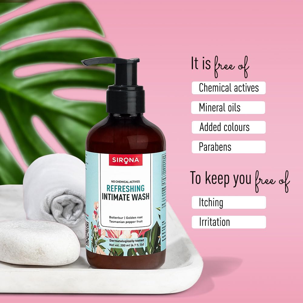 Sirona Natural Refreshing Feminine Wash - 6.7 Fl Oz (200 ml) | No Chemical, No Irritation, pH Balanced Intimate