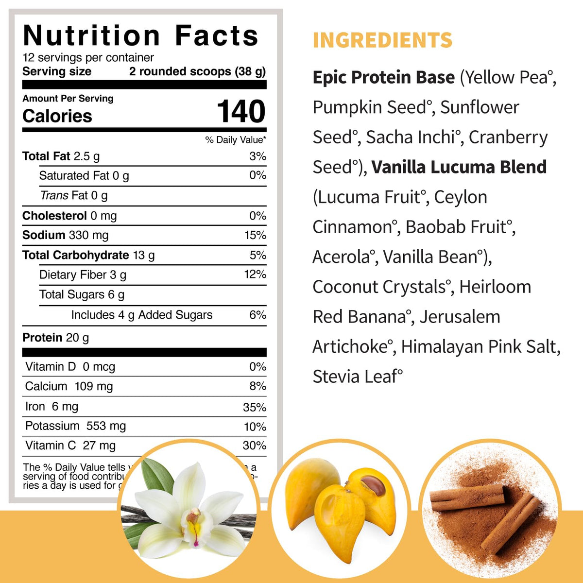 Sprout Living Epic Protein, Plant Based Protein & Superfoods Powder, Vanilla Lucuma