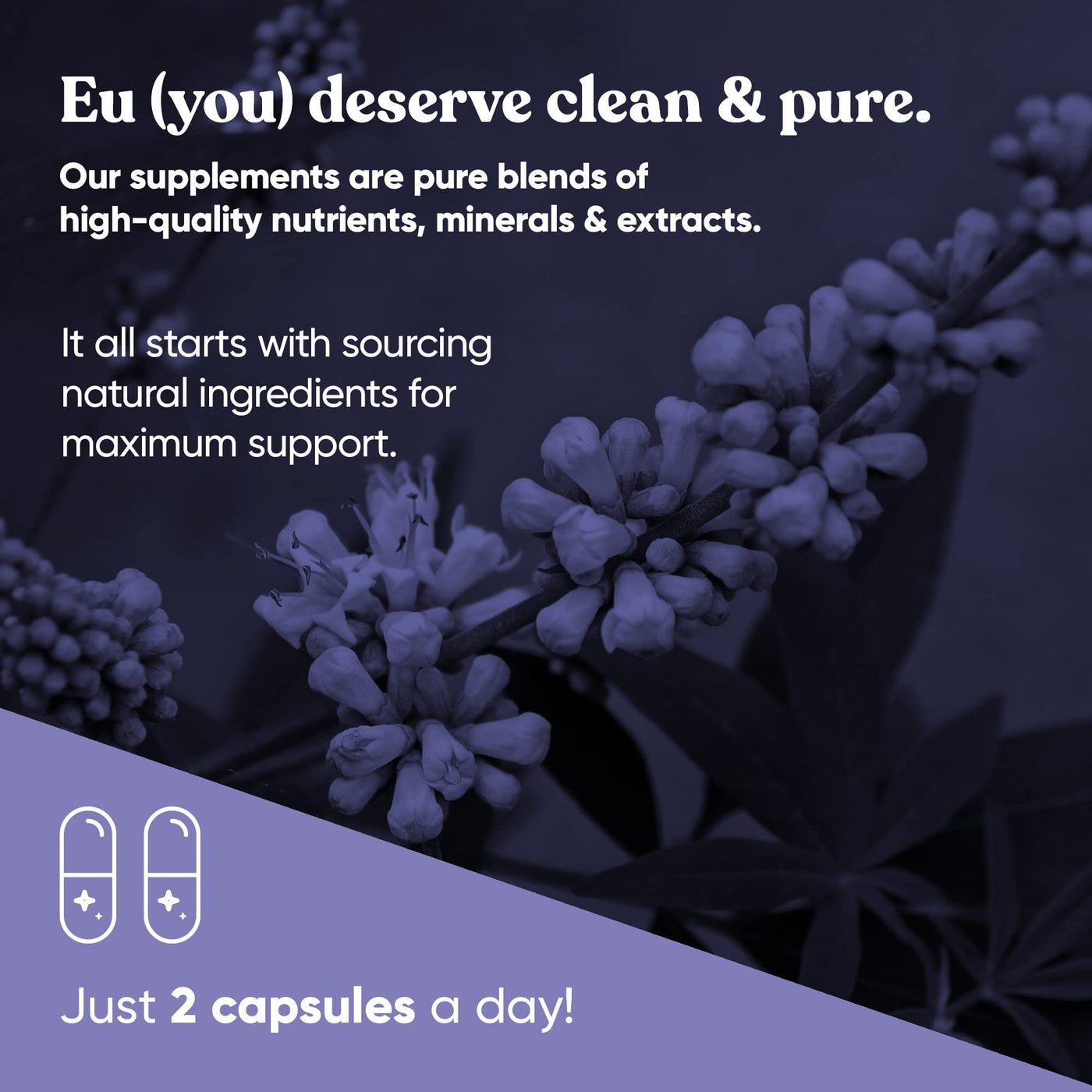 Details: Tanto si sufre de bochornos extenuantes como si desea un descanso reparador por la noche, tratar la menopausia no es fácil. Staying Cool para aliviar los bochornos y la menopausia de Eu Natural viene con muchas vitaminas saludables, como el complejo vitamínico A, C, D y B. El manganeso, el zinc, el selenio y el cobre mejoran la eficacia de esta saludable fórmula natural. También se incluyen ingredientes clínicamente investigados como ashwagandha orgánico KSM-66, soja SoyLife, baya del árbol casto vitex, cohosh negro, magnolia, jujube, lúpulo, hierba de San Juan y pueraria mirifica. Estos sanos ingredientes brindan alivio a largo plazo centrándose en la causa raíz de la menopausia en lugar de ocultar los síntomas. La potente mezcla de vitaminas, minerales y extractos de hierbas totalmente naturales puede ayudar a tratar los síntomas de los bochornos, la sudoración nocturna, la sequedad vaginal, el aumento de peso, el sueño, los cambios menstruales y la libido. La diferencia de Eu Natural Puramente
