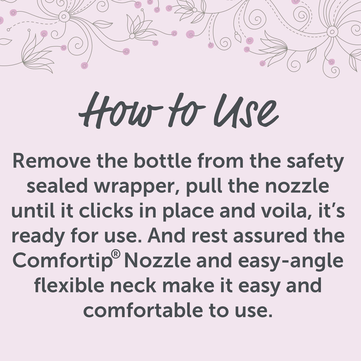 How Summer's Eve is different: Exclusive One-Piece Unit: The bottle and nozzle are one single unit, so there's nothing to assemble. Complete and ready-to-use. Comfortip® Nozzle: The Summer's Eve douche nozzle has been designed to assure easy and comfortable insertion. Easy Angle Flexible Neck: The exclusive flexible neck allows you to adjust the nozzle to the most comfortable position for you. Exclusive Gentle Cleansing Formulas: Summer's Eve douches have special gentle cleansing formulas with purified water to leave you fresh and clean. Safety Overwrap: Only Summer's Eve units come completely overwrapped for sanitary protection prior to use.