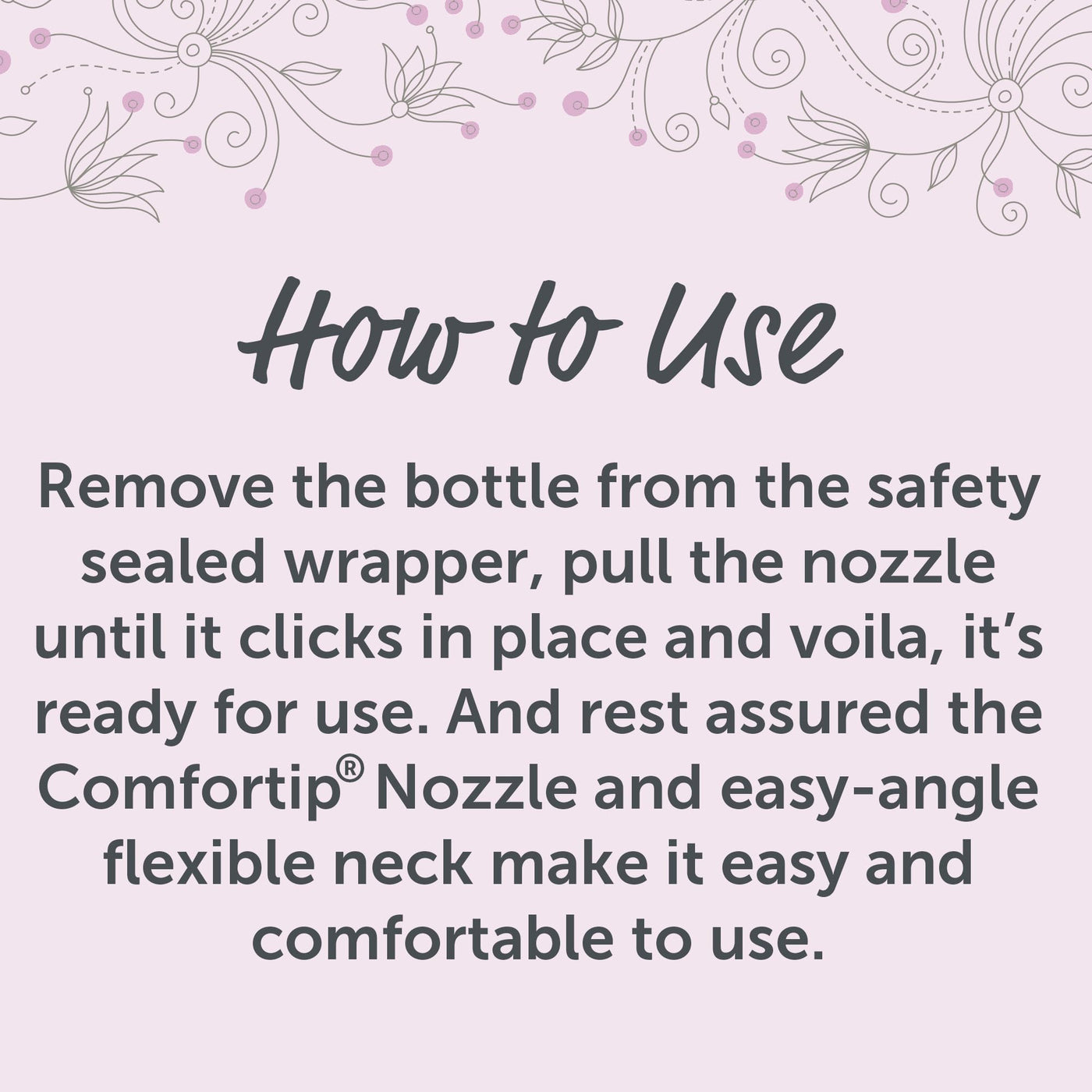 Premixed, premeasured, ready-to-use, but with an important difference: only Summer's Eve douches have an exclusive one-piece design so there are no separate parts to assemble before use. The Comfortip® nozzle and easy angle flexible neck make insertion and use easier and more comfortable than ever.