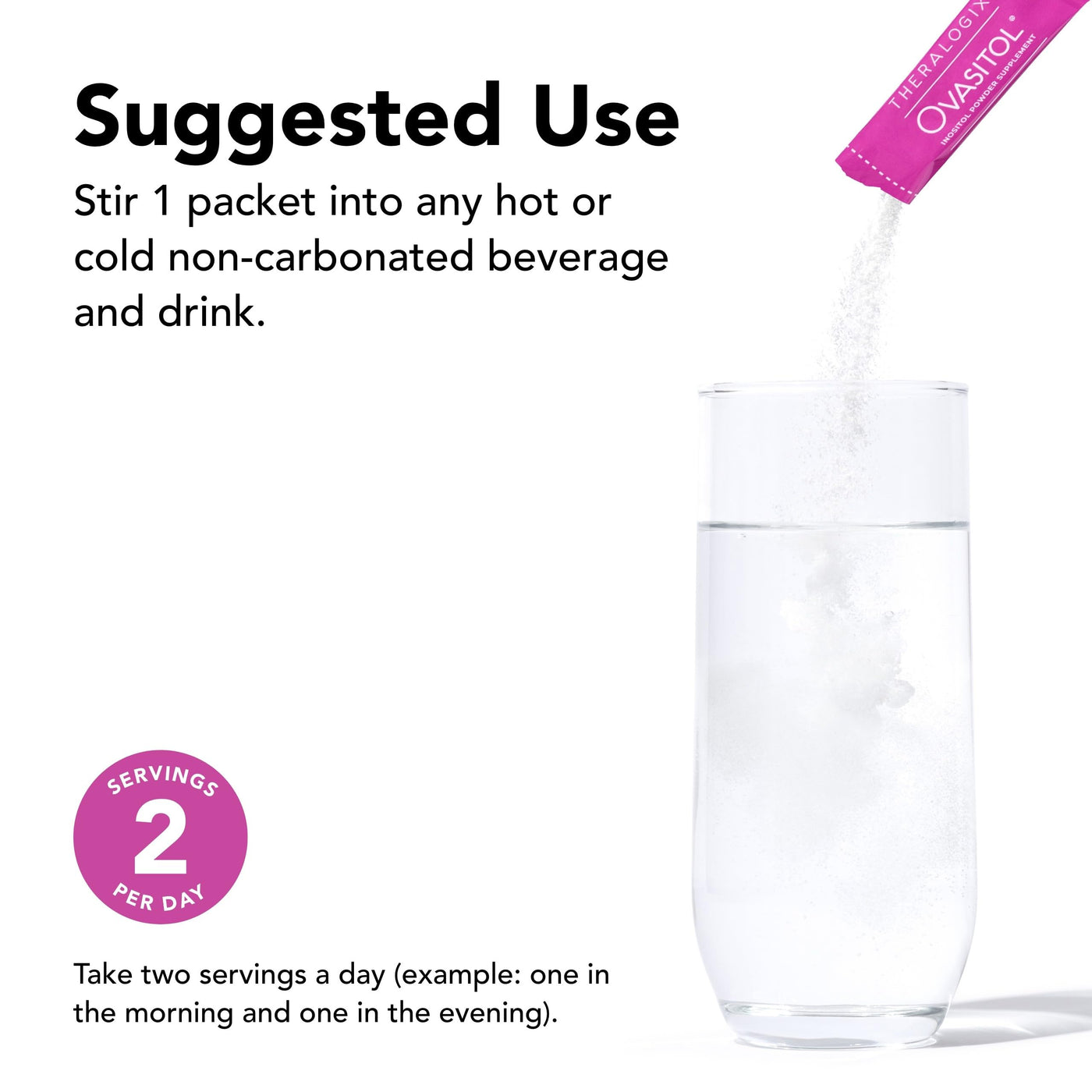 Details: Ovasitol is an inositol powder scientifically formulated to promote menstrual regularity and normal ovarian function.* Ovasitol is the original U.S.-made 40:1 MYO/DCI inositol product as well as the first and only inositol supplement independently verified for content accuracy, purity, and freedom from contaminants through a not-for-profit certification program (NSF International). Ovasitol is formulated by an advisory board of leading reproductive health specialists. Ovasitol contains a tasteless and odorless powder, packaged in a convenient, single serving packet. It is designed to be mixed with water or other beverage. Each packet provides 2000 mg of myo-inositol and 50mg of D-chiro-inositol, in the body's normal ratio of 40 to 1. * 100% pure inositols, no fillers. This statement has not been evaluated by the Food and Drug Administration. This product is not intended to diagnose, treat, cure or prevent any disease.