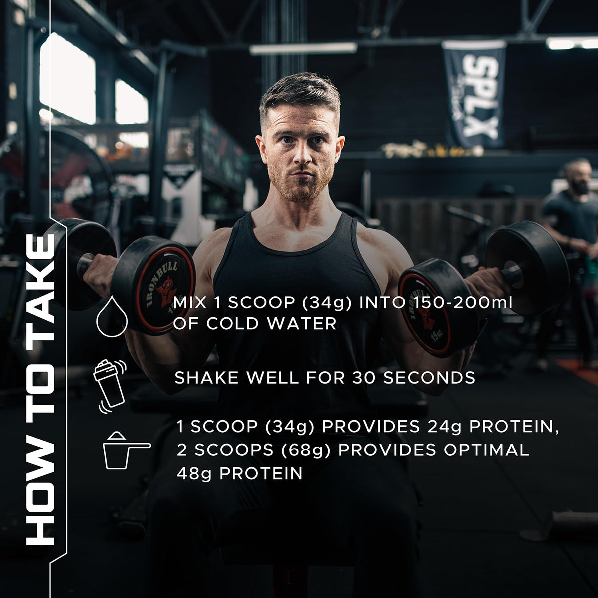 For up 24g and 48g protein serving, mix 1 scoop (34g) into 150-200ml of cold and shake well in a USN shaker. For up to 48g protein serving, mix 2 scoops (68g) into 300-400ml of cold water and shake well in a USN shaker.