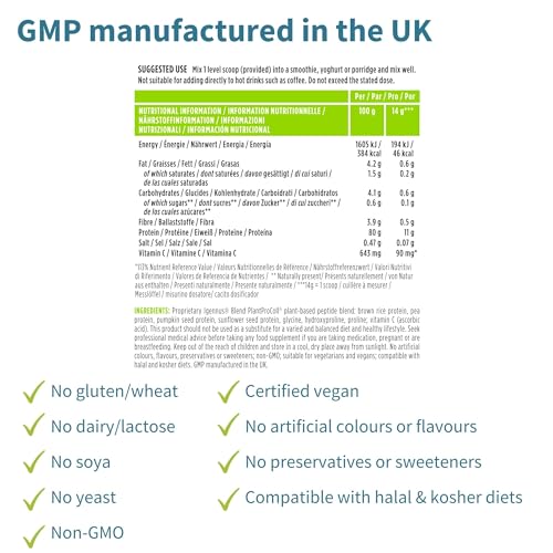 - WHOLEFOOD SOURCE - derived from brown rice, pea, pumpkin seed and sunflower seed - ideal blended into smoothies, shaken into plant milks or added to food, but not intended for use in water or hot drinks such as coffee