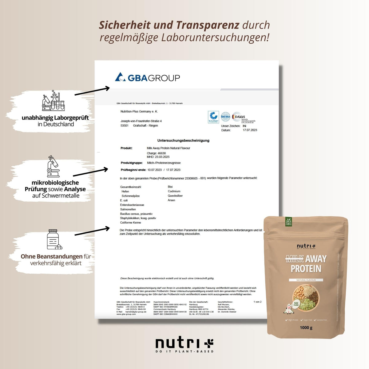 Milk Away Protein - Support your workout Milk makes you big and strong? That was yesterday! Now plant-based is the order of the day! With our Milk Away Protein you support your muscle building in a sustainable way. plant-based multi-component protein High protein content, low in fat and sugar WITHOUT soy and wheat protein - ideal for allergies and intolerances vegan (without lactose and milk protein or other animal products) available in neutral and 4 delicious flavors