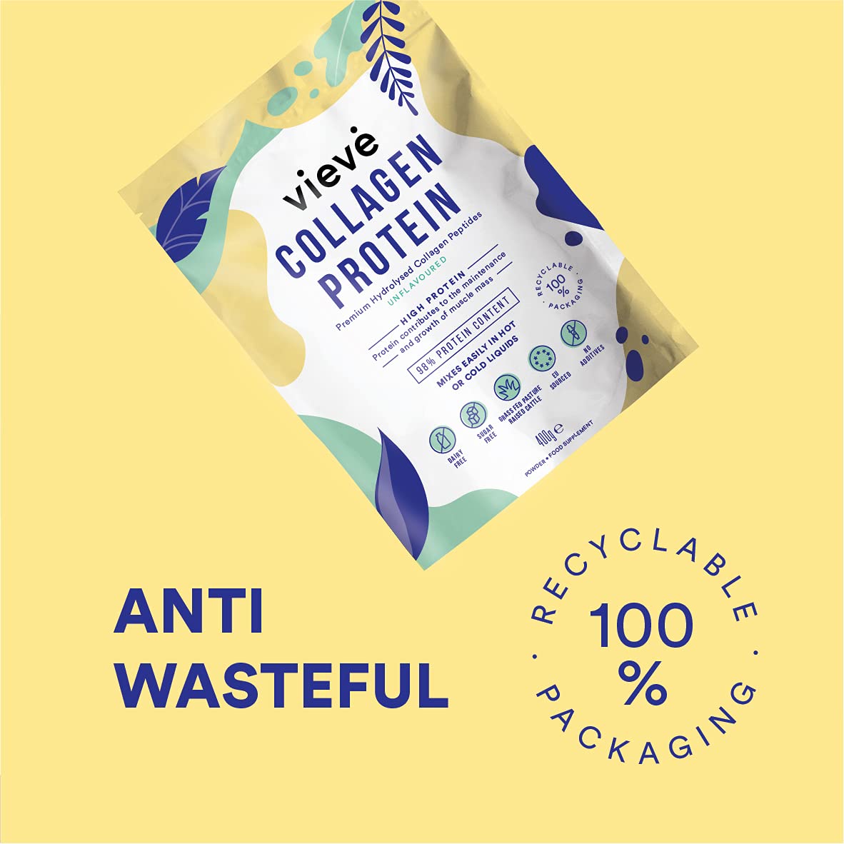 Vieve Collagen Protein Powder - Hydrolysed Bovine Peptides - Diet Support Supplement for Skin, Hair, Nail