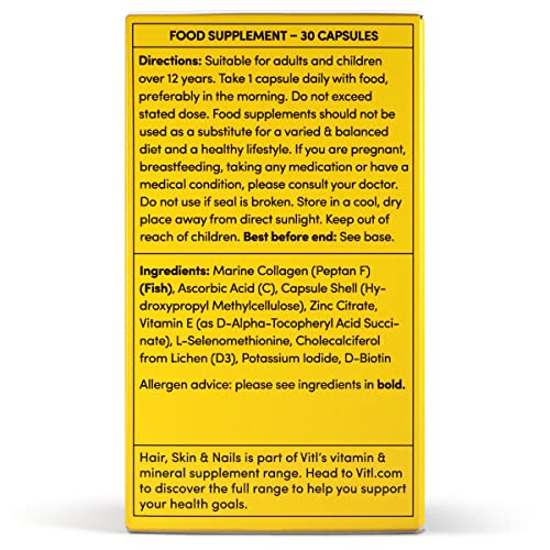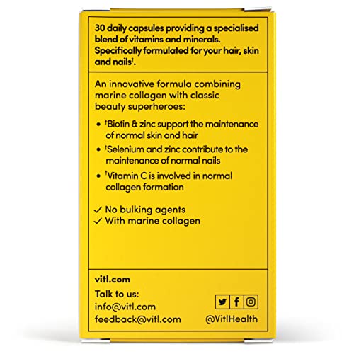 VITL Hair, Skin & Nails + Collagen, A dose of Classic Complexion Heroes Such as Collagen, Vitamin E, Biotin and Zinc | 30 Capsules