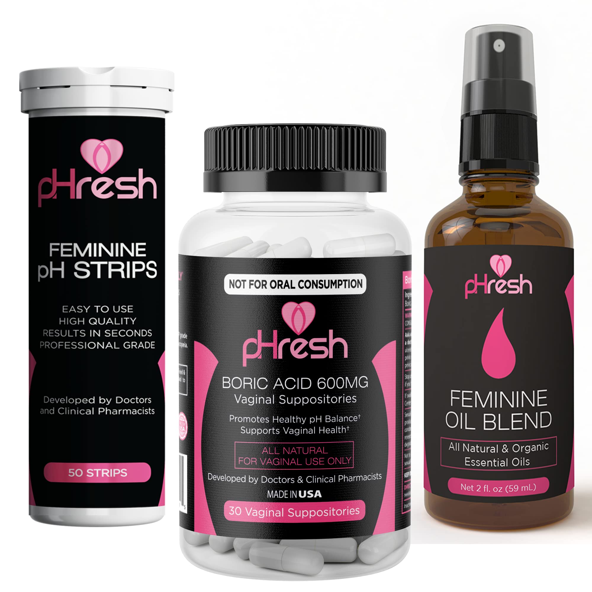 ACE NUTRITION 3 Pack - Boric Acid Suppositories & All Natural Feminine Spray and pH Test Strips