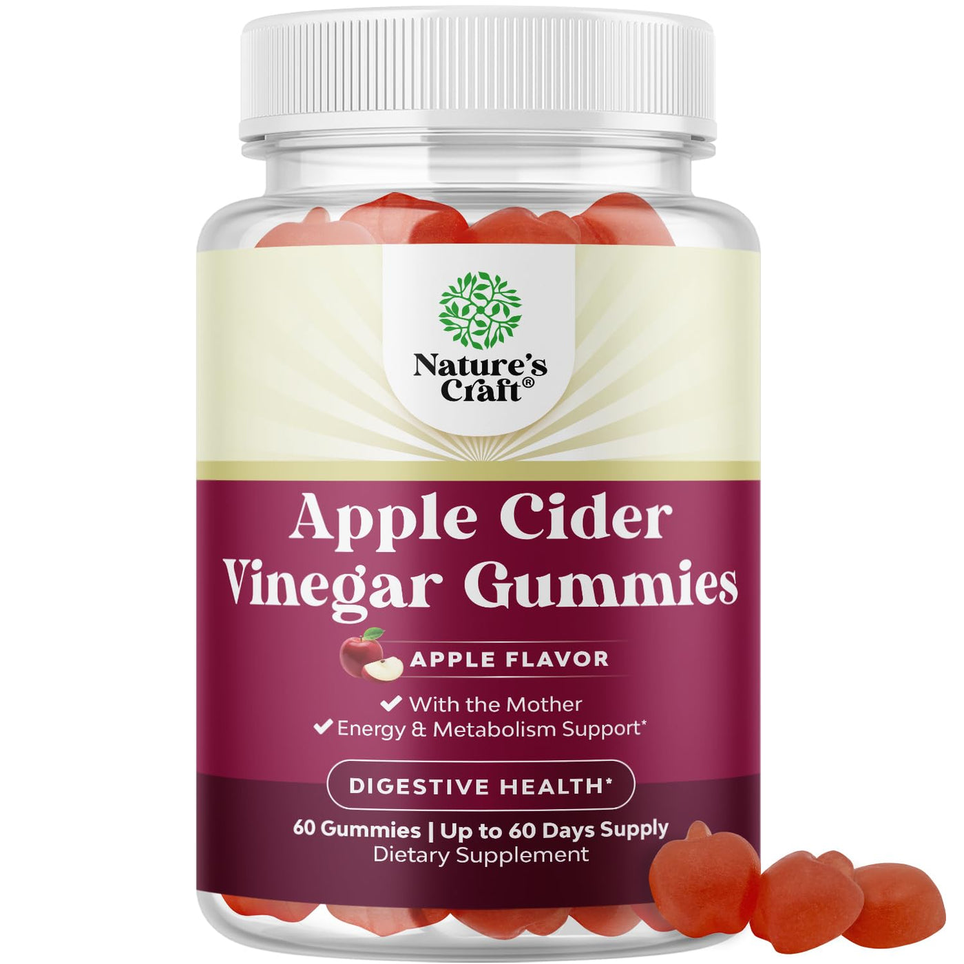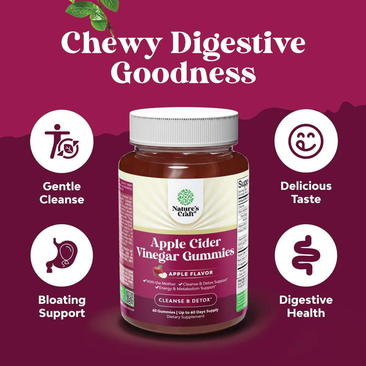 Apple Cider Vinegar Gummies with Mother - Cleanse & Detox ACV Gummies for Weight Loss, Gut Health, Bloating, Metabolism & Energy Support - ACV with Mother with B12 Vitamin, B6 & Pomegranate - 60 Ct