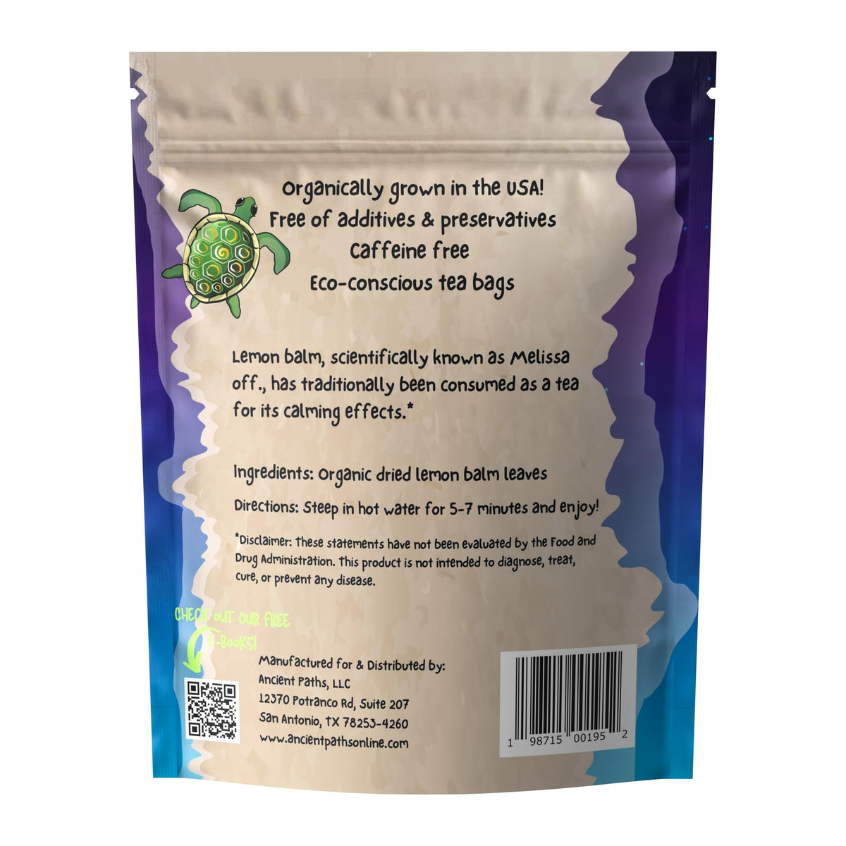 Ancient Paths Organic Lemon Balm Herbal Tea - Nervous & Digestive Support - 100% Pure Dried Lemon Balm Calming Tea - Caffeine-Free & Sustainable Tea Bags - USA Grown (20 Sachets)
