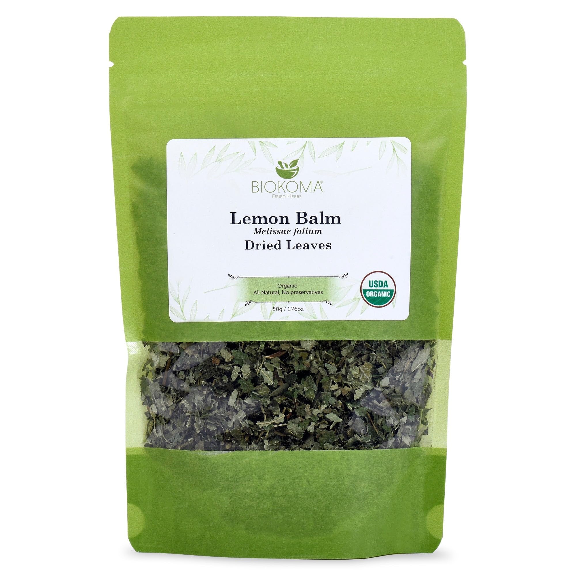 Biokoma Pure and Organic Lemon Balm (Melissae folium) Dried Leaves 50g (1.76oz) In Resealable Moisture Proof Pouch, USDA Certified Organic - Herbal Tea, No Additives, No Preservatives, No GMO, Kosher