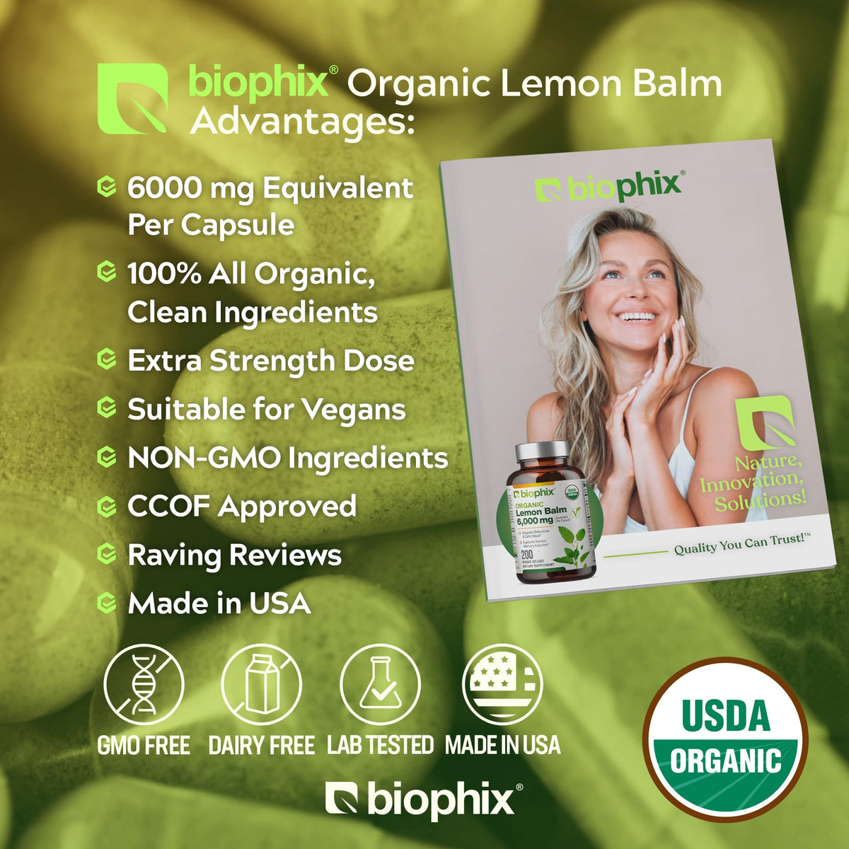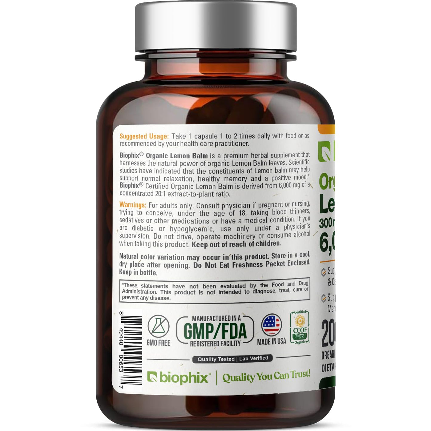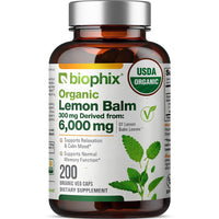 biophix Lemon Balm Capsules USDA Organic 20:1 Extract 300 mg 200 Veggie Caps - Cognitive Health Stress Sleep Mood Support Natural Herbal Supplement