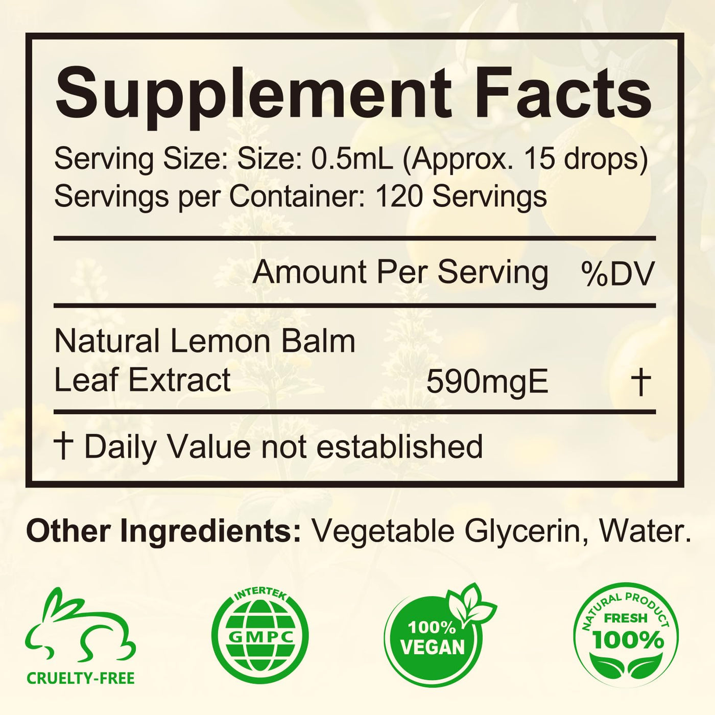 FBGVKJWI Organic Lemon Balm Leaf Extract Drops Supplement, Organic Lemon Balm Tincture for Mood & Relaxation Support, Vegan, Gluten Free, Tincture Leaf Drops for Women and Men - 2.02 fl.oz