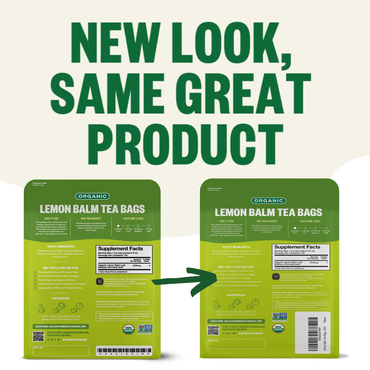 FGO Organic Lemon Balm Tea, 100 Count, Eco-Conscious Herbal Tea Bags, Resealable Bag, Caffeine Free, Packaging May Vary (Pack of 1)