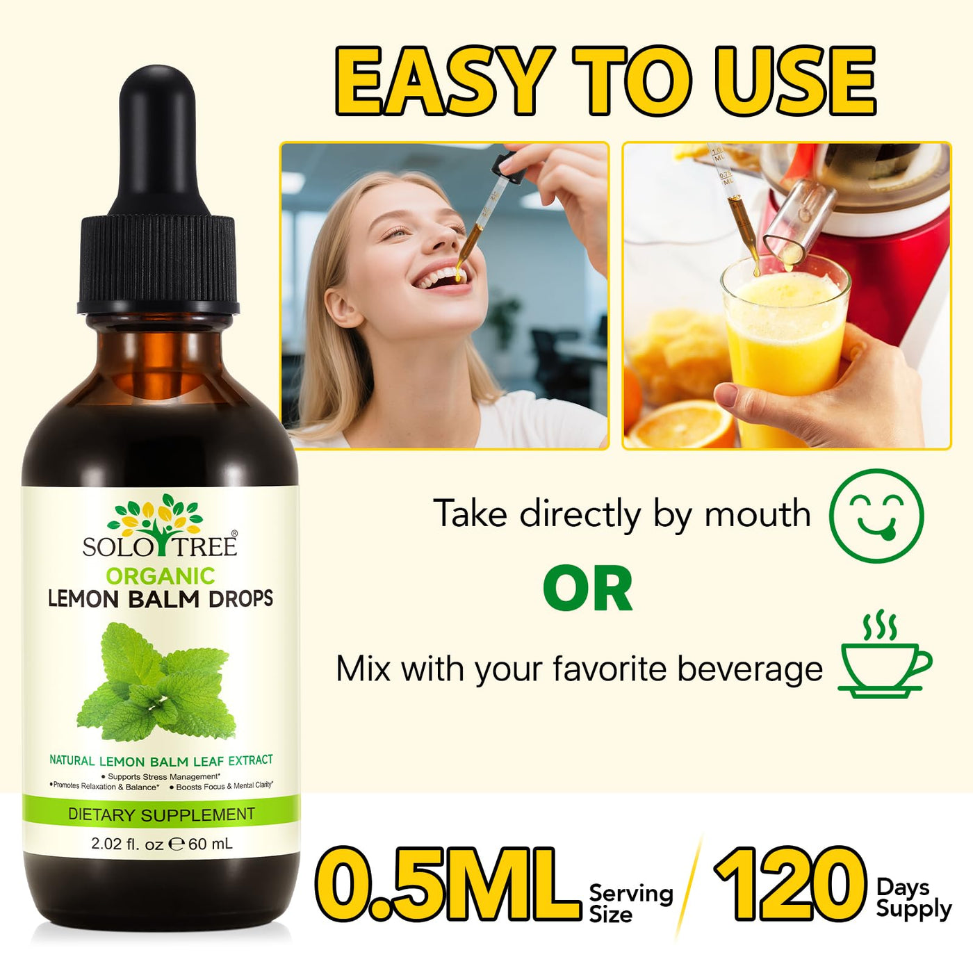 jollifish Organic Lemon Balm Drops - 120 Servings Herbal Supplements with Natural Lemon Balm Leaf Extract for Digestion & Relaxation Supports Healthy Sleep, Non-GMO, Alcohol-Free - 2 Fl.oz
