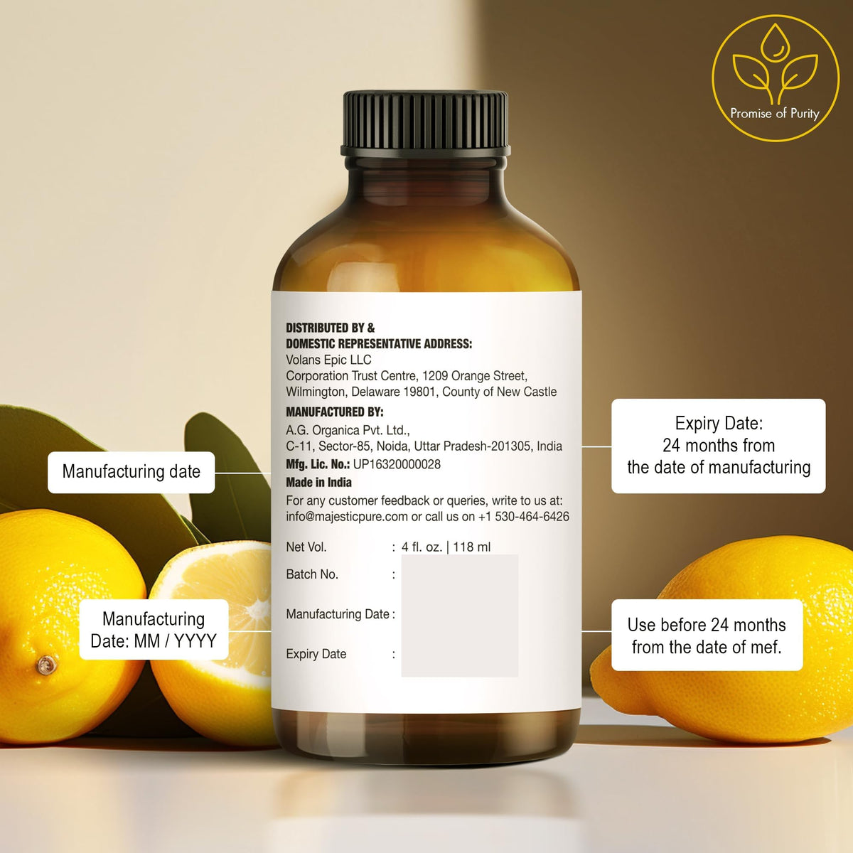 Majestic Pure Lemon Essential Oil with Glass Dropper - Huge 4 Fl Oz - 100% Pure and Natural Lemon Oil - Premium Grade Essential Oils for Diffuser, Aromatherapy, Soap and Candle Making