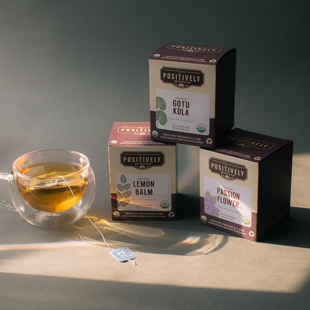 Organic Positively Botanicals Company, Lemon Balm Herbal Tea Bags, 20 Count