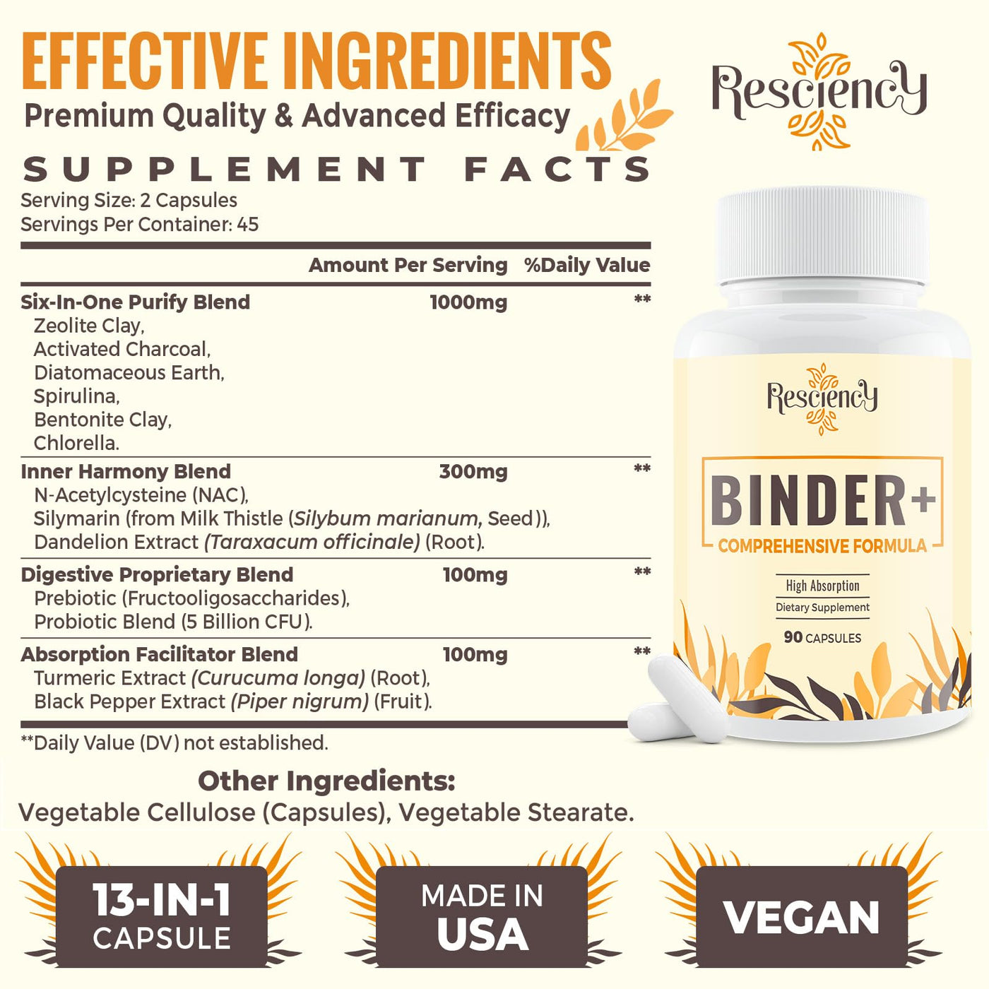 Detox Binder Supplement – Activated Charcoal, Zeolite, Bentonite Clay, Milk Thistle, Proprietary Blends - Liver & Gut, Max Absorption, 90 Vegan Capsules