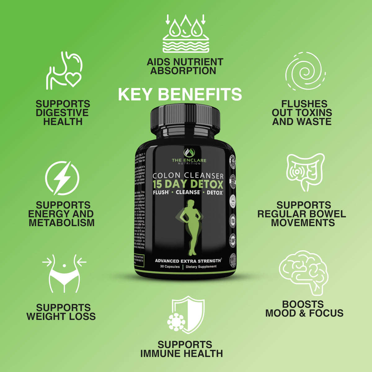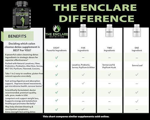 THE ENCLARE NUTRITION Colon Cleanse 15 Day Gut Cleanse Pills. Colon Cleanser for Women & Men. Psyllium, Probiotic Laxatives for Constipation, Bloating Relief, Detox Cleanse for Weight Loss Support (1)