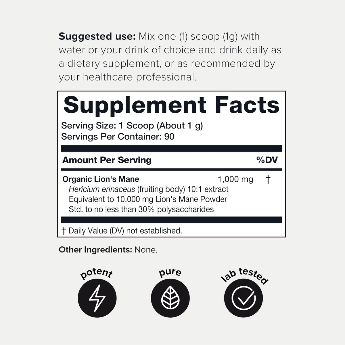 10,000mg 10x Concentrated Ultra High Strength Organic Lions Mane Powder