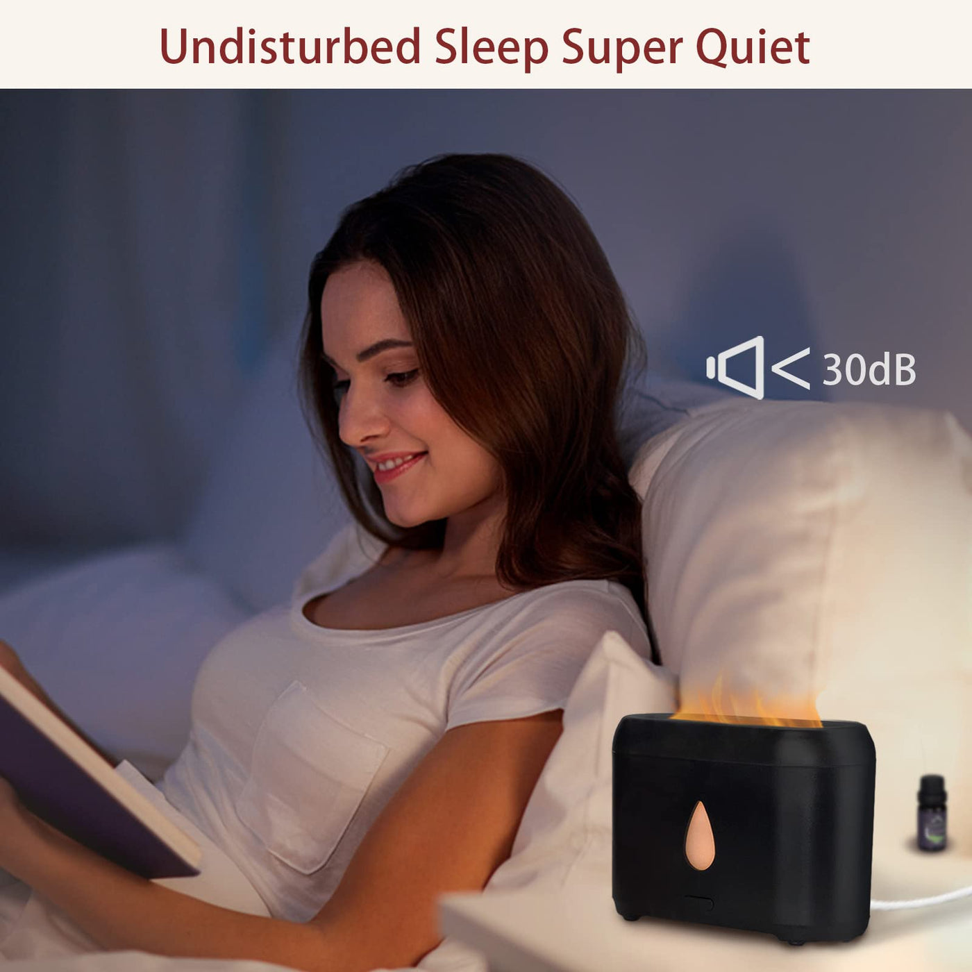 200ml Small Ultrasonic Aroma Diffusers with Flame Light (Black)
