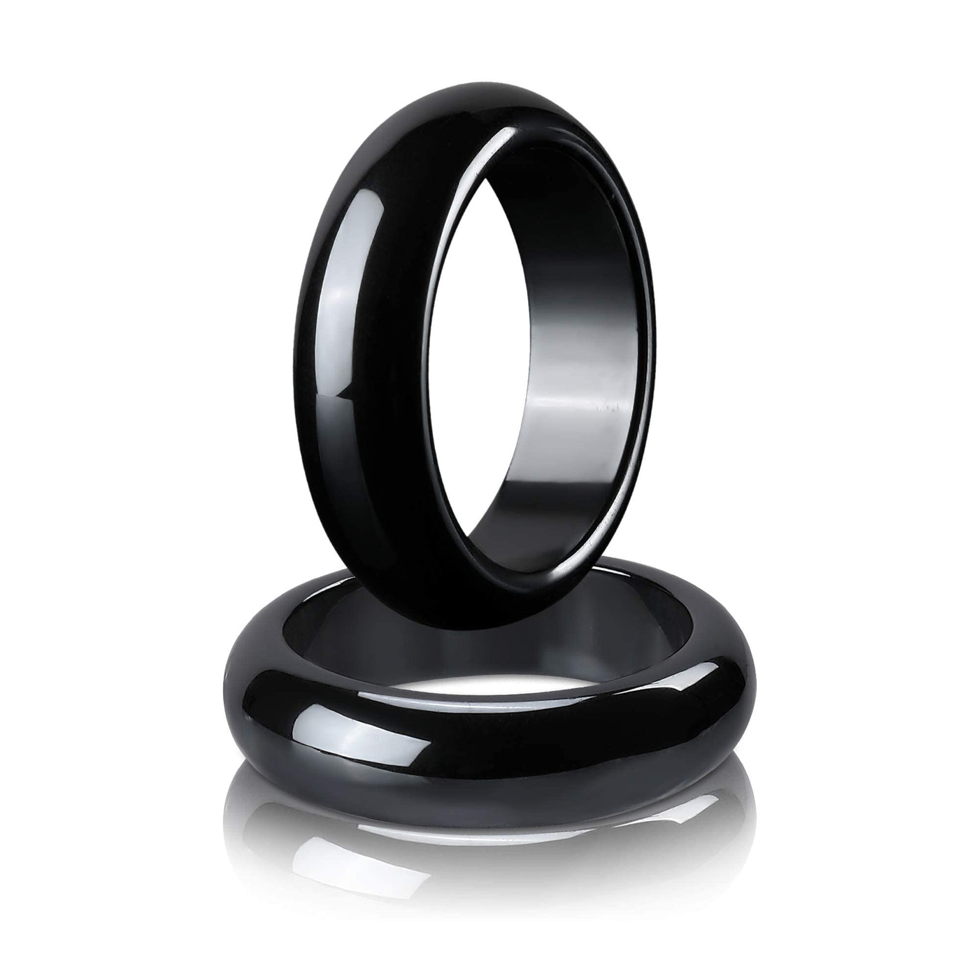 2PCS Genuine Hematite Ring for Women Men Unisex, Black Hematite Stone Ring Anxiety Balance