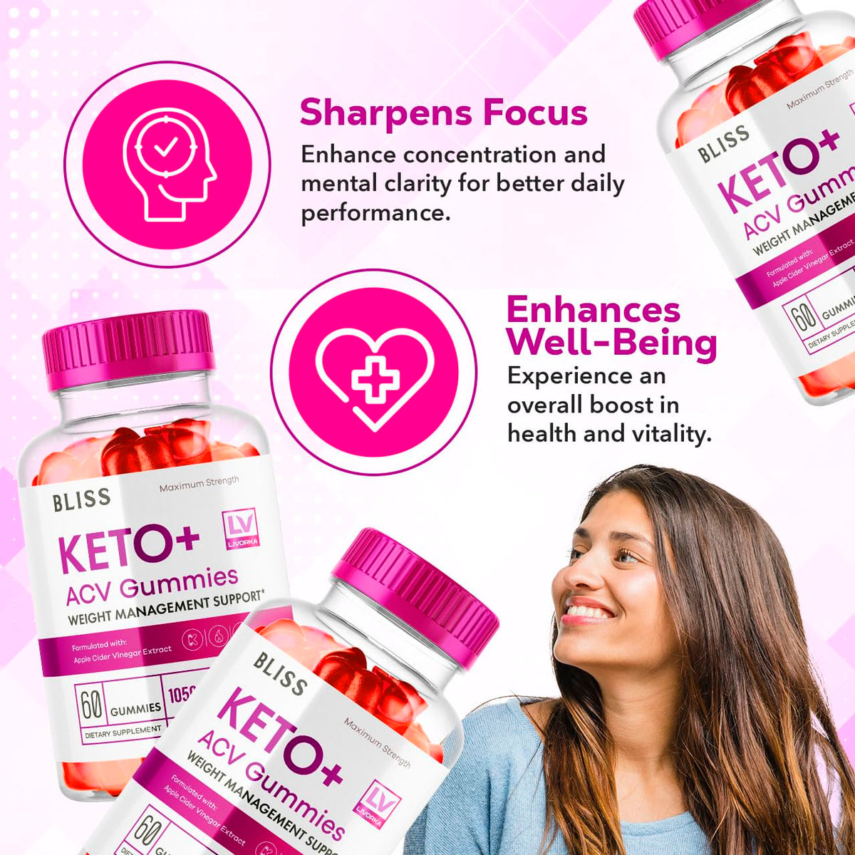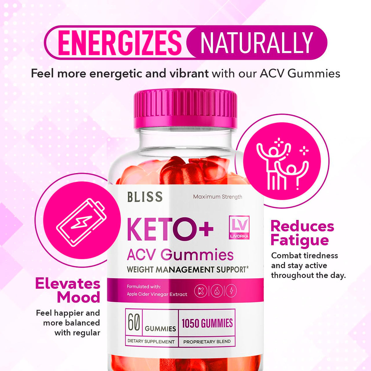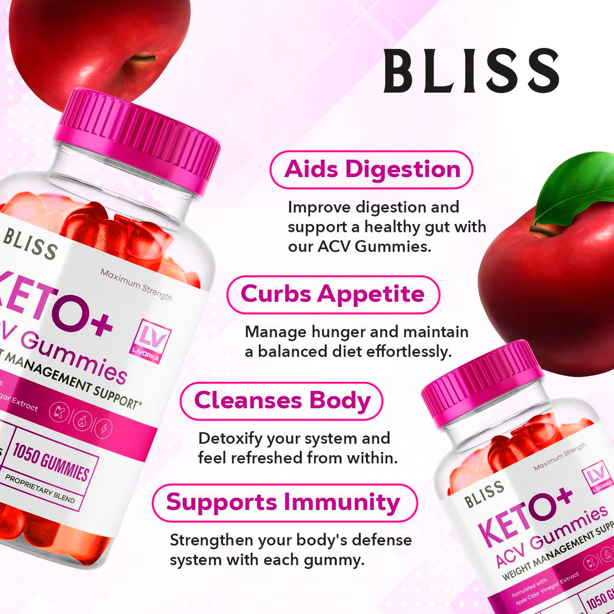 5 Pack - Bliss Keto ACV Gummies Advanced Weight Loss, Bliss ACV Active Gummies