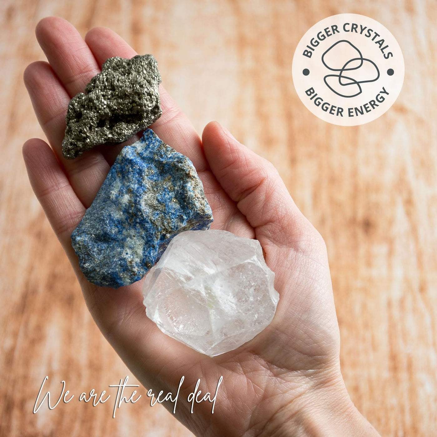 5PCS SAMSARI Abundance XL Crystals Healing Set - (Pyrite, Lapis Lazuli, Clear Quartz), 1 Palo Santo Stick