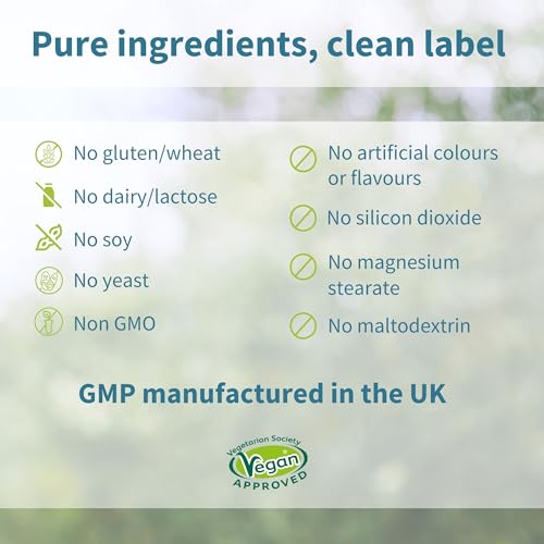 - PURE & CLEAN - formulated by nutrition scientists; we only use hypoallergenic ingredients with no unnecessary additives (such as silicon dioxide or magnesium stearate), lab verified, vegan, GMP manufactured in the UK
