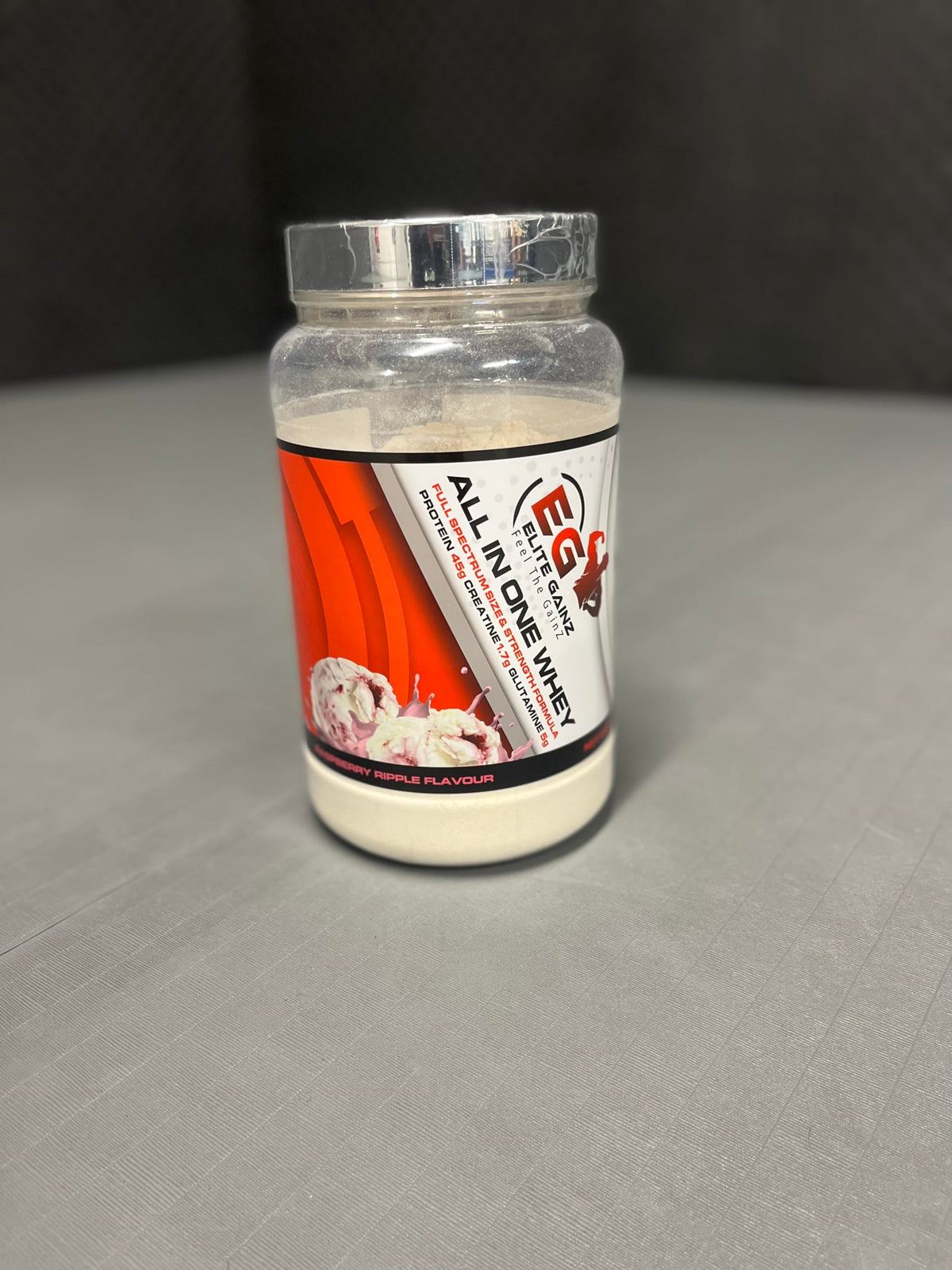 - ✔️ ALL IN ONE WHEY PROTEIN contains a high level of protein with an optimum ratio of carbohydrates to aid recovery and the uptake of nutrients, while also being enhanced by the inclusion of: Creatine Monohydrate Glutamine HMB. Creatine is scientifically proven to increase strength and power in high-intensity training. L-Glutamine is a key amino acid important for increasing the rate of recovery and supporting the immune system. HMB effectively aids protein synthesis.