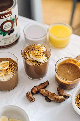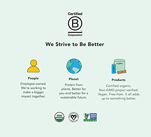 Looking for a great tasting, organic, plant-based protein boost? Aloha’s Chocolate Protein Powder delivers 18g clean protein per serving and features 100% recyclable packaging. This 1Lb 3oz tin of organic protein powder features classic, organic cocoa, cinnamon, and coconut sugar for a subtly sweet, protein-packed treat that’s perfect for any time of day. Aloha’s organic plant-based protein is low in sugar and carbohydrates, free of sugar alcohols, and is a blend of organic pea, organic brown rice, organic pumpkin seed and organic hemp seed protein. Blend up this tasty protein powder into a smoothie or just shake it up with a non-dairy milk replacement for an easy, delicious, vegan snack, pick-me-up, or meal replacement. Aloha Protein Powder is Organic Certified and free of artificals, so when you add it to your shake, smoothie or other favorite, healthy recipes, you know you’re getting the highest quality energy boost. Aloha Organic Protein Powder checks all the boxes: Vegan, Stevia-Free, Kosher Certified, Dairy-Free (lactose-free), Gluten-Free, Soy-Free, USDA Organic, Non-GMO, High Protein, and delicious! Aloha Organic Protein Powder is also an excellent source of fiber and iron, offers a complete amino acid profile, and includes MCT Oil from coconut for natural energy and endurance.