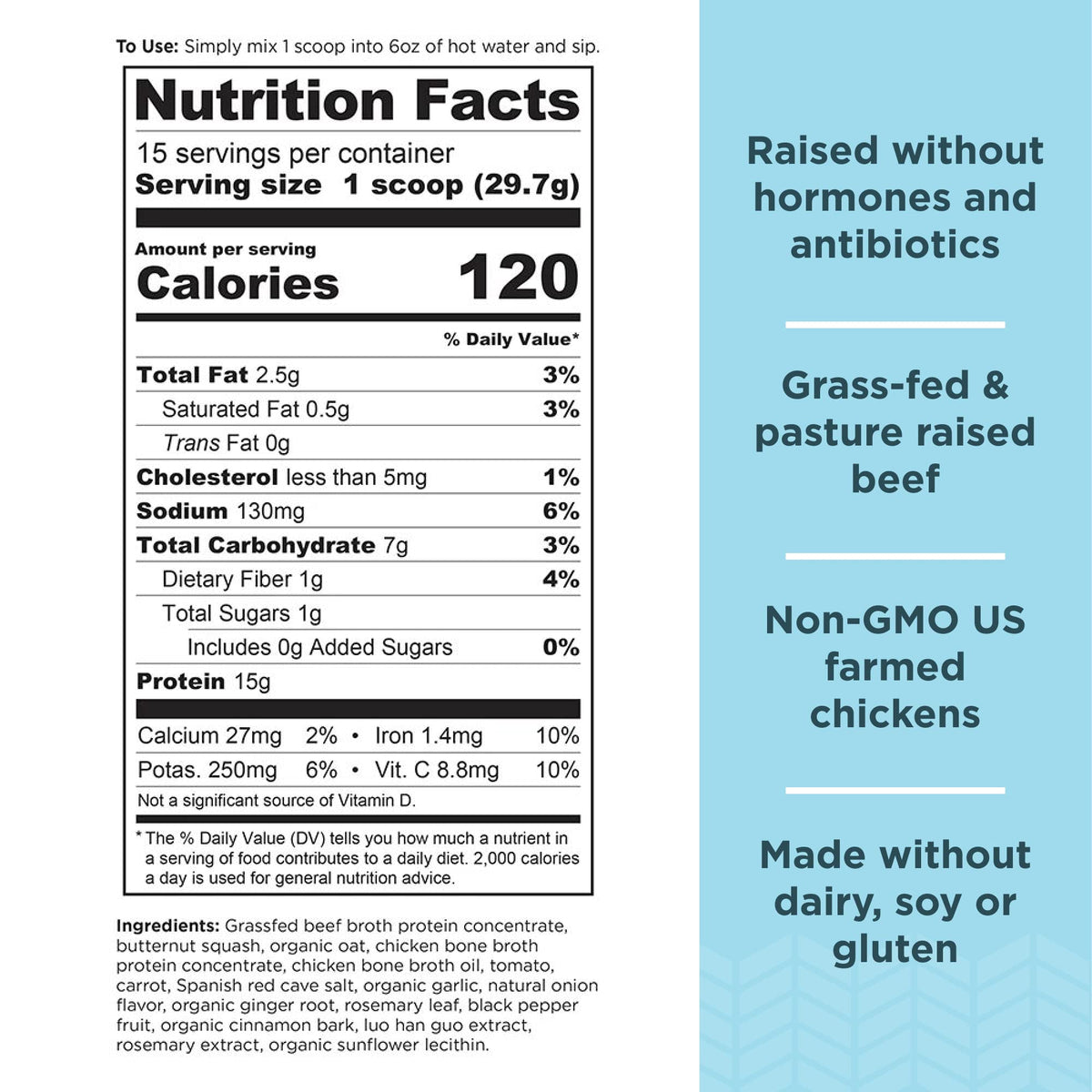 - SAVORY & EASY TO USE - Mix one scoop in 6 or 8oz of hot water & sip. Warm broth has been a staple for generations to support overall satiety, provide gut support and help you stay full – so we’ve created a line of three soup-inspired flavors designed to be added to just water, and consumed warm.