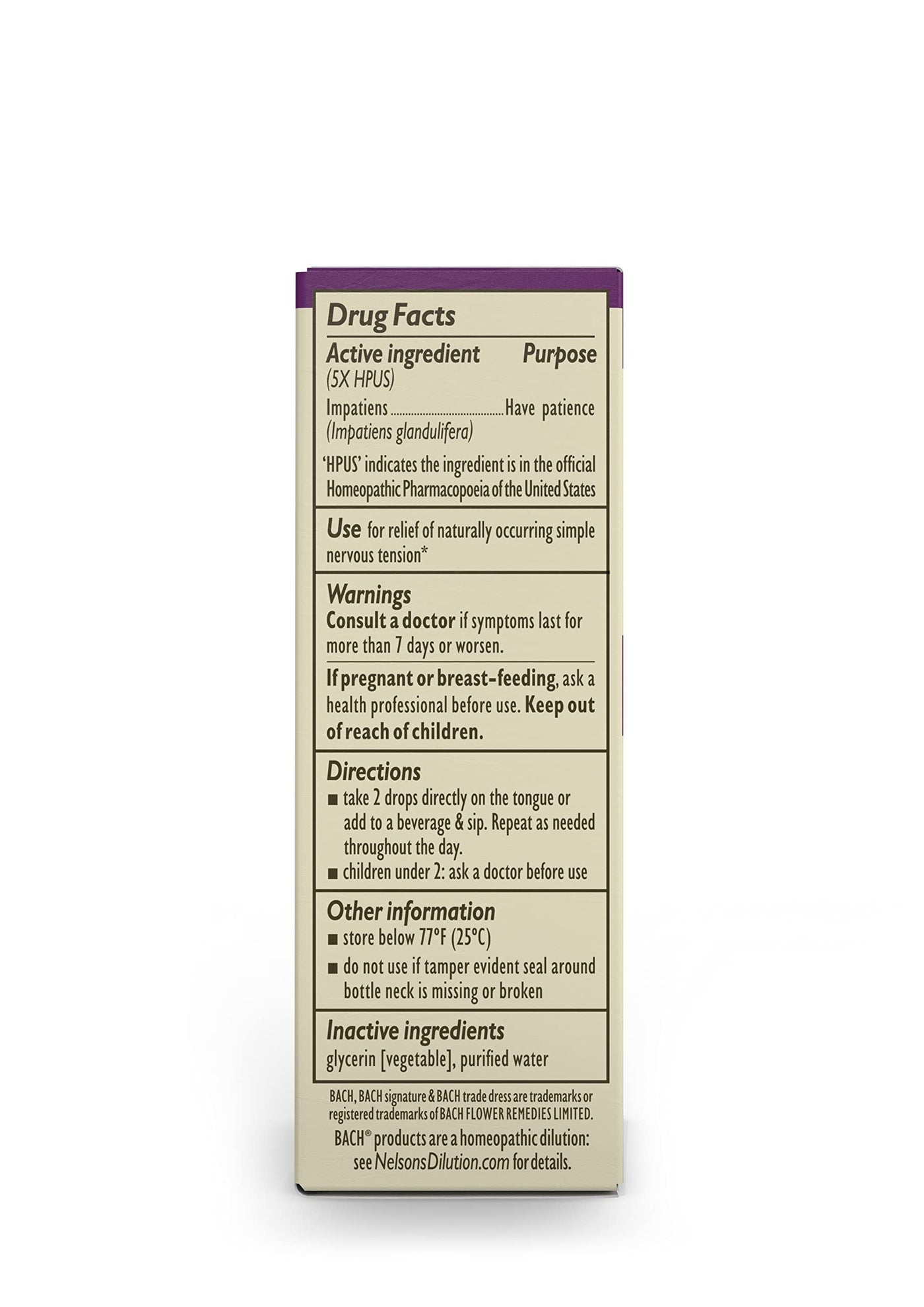 Bach Original Flower Remedies, Impatiens for Patience (Non-Alcohol Formula), Natural Homeopathic