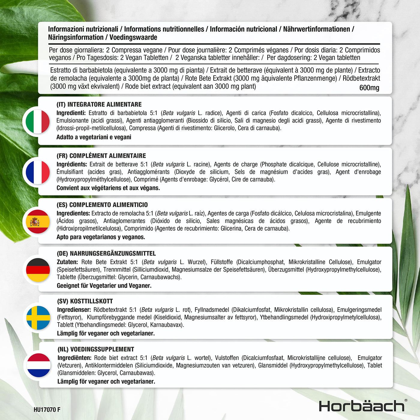 - SUITABLE FOR: Horbaach Beetroot Extract tablets are free from artificial colours or preservatives, suitable for vegans and vegetarians and also suitable for adult men & women.
