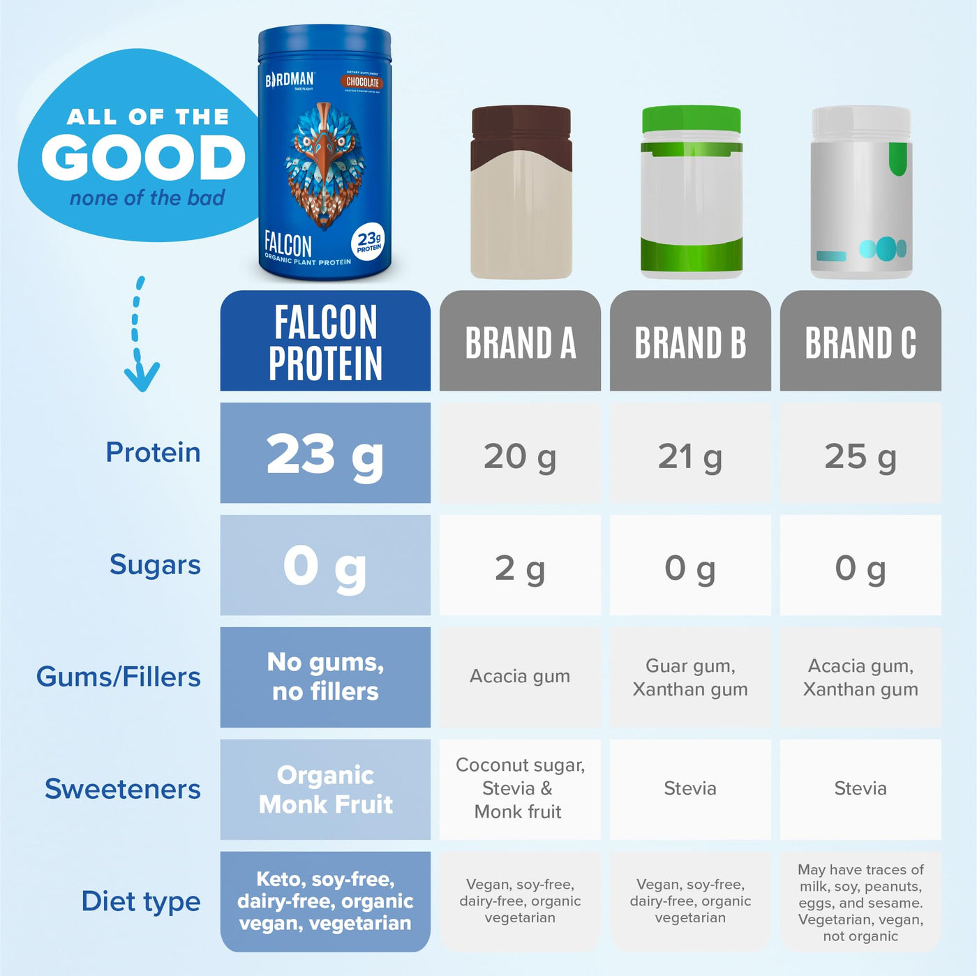 BIRDMAN Falcon Vegan Protein Powder Organic, Stevia & Sugar Free, Plant Based Protein