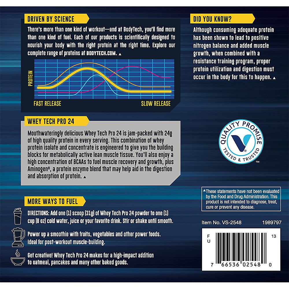 BODYTECH Whey Tech Pro 24 Protein Powder - Protein Enzyme Blend with BCAA's