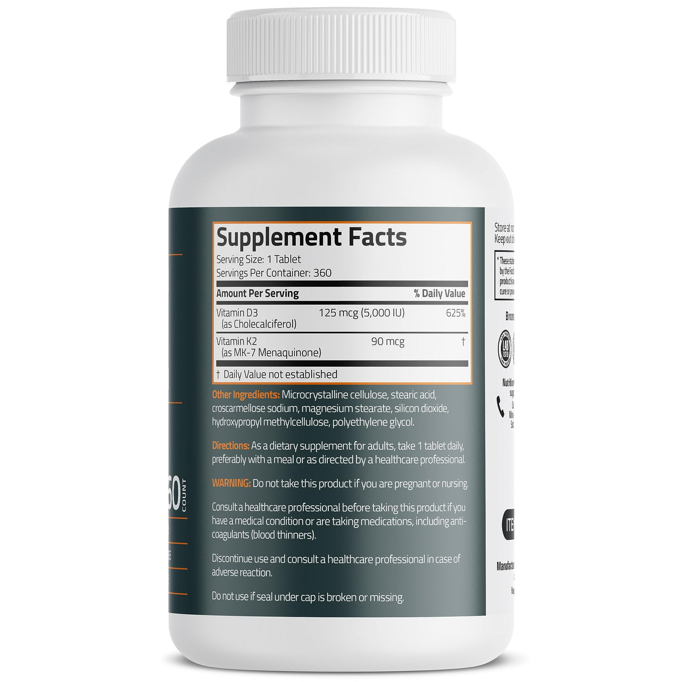 Bronson Basics Vitamin K2 D3 (MK7) Supplement Non-GMO Formula 5000IU (125 mcg)